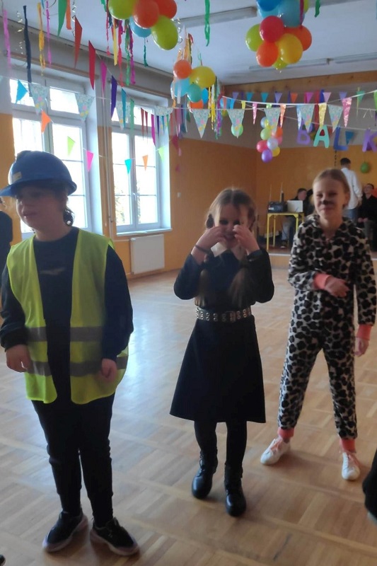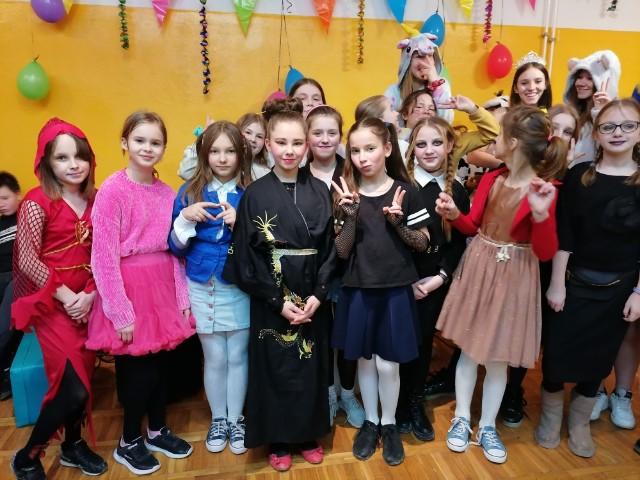 Bajecznie kolorowe i fantazyjne stroje uczniów ubarwiły bal naszej szkoły. Były wróżki, księżniczki i różne inne barwne postacie.Były korowody, kółeczka i tańce w parach.
