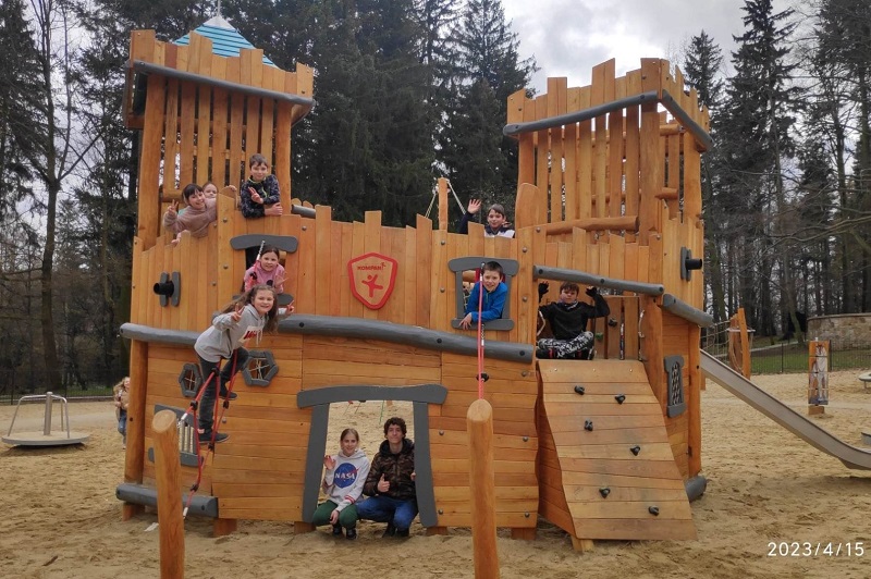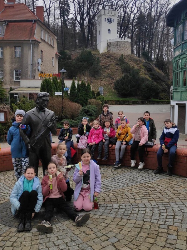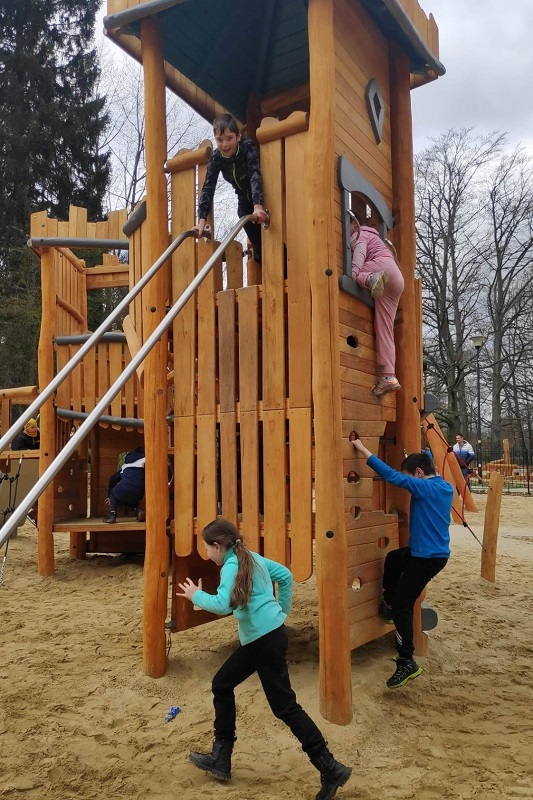 Dnia 15.04.23 spod szkoły grupa unijnego Projektu „Jesteśmy Razem” , ruszyła w kierunku Wzgórza Gedymina na wieżę widokową. Tu mogliśmy podziwiać piękne widoki dzięki przejrzystości powietrza. Po wykonaniu kilku pamiątkowych zdjęć zeszliśmy na Słoneczną Polane na plac zabaw i ścianę wspinaczkową. Zrobiliśmy też zdjęcie z widokiem na tor rowerowy, gdzie kiedyś odbywały się międzynarodowe zawody crossowe. Schodząc w dół spoczęliśmy na deptaku. Po krótkim posiłku i zakupie pamiątek i łakoci przeszliśmy Parkiem Szwedzkim w kierunku Dworzyska. Tu zwiedziliśmy stajnie i zewnętrzne siedlisko alpak. Wracając przez park wstąpiliśmy na nowy plac zabaw, skąd ruszyliśmy w drogę powrotną pod szkołę. Bardzo zmęczeni, pożegnaliśmy się po ekstremalnie, dla co niektórych, aktywnie spędzonym dniu.
