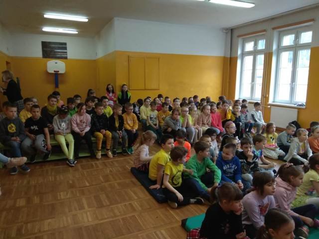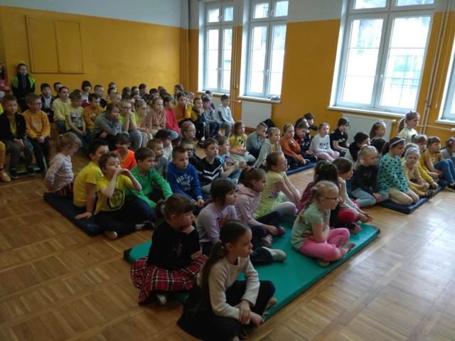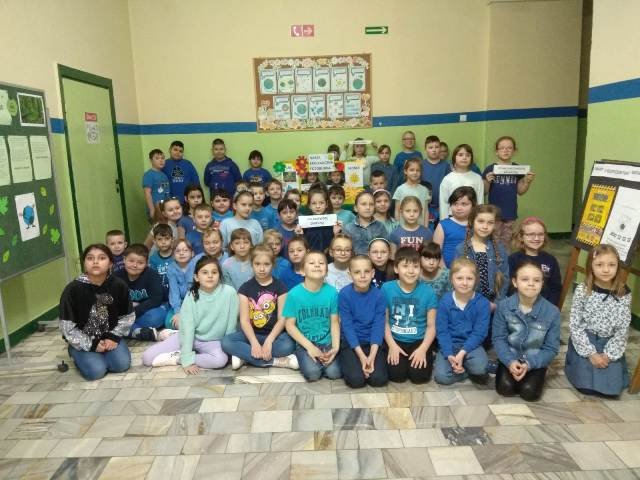 Żółty- jak Słońce! Niebieski - jak woda! Zielony - jak las! To hasła, które przyświecały tegorocznym Dniom Ekologicznym. Rozpoczęły się one apelem przygotowanym przez klasę 2 a. Uczniowie zostali zainteresowani tematyką - wysłuchali ciekawostek o Słońcu, wodzie i lesie, przypomnieli sobie, jak można chronić powietrze, wodę i las, a wszystko to było przeplatane piosenkami i wierszem. Podczas zajęć w klasach, poszerzyli i utrwalili wiadomości o konieczności ochrony przyrody: rozwiązywali krzyżówki i test wiedzy, oglądali filmy edukacyjne. Przychodzili do szkoły w ubiorach kolorem stosownym do tematyki zajęć. Mogli także wykonać zdjęcia w fotobudce oraz narysować swoje ulubione elementy przyrody na przygotowanych arkuszach papieru. Dni zostały zakończone udziałem w akcji "Czysty Wałbrzych"