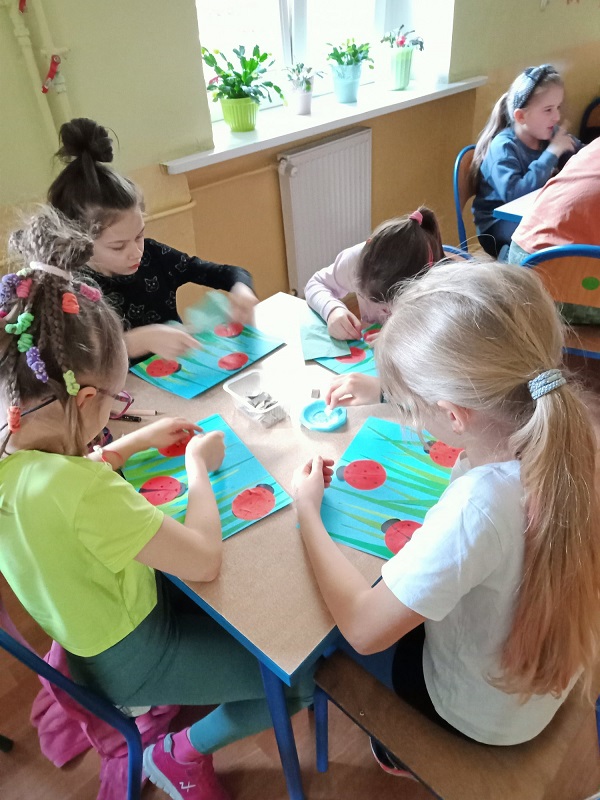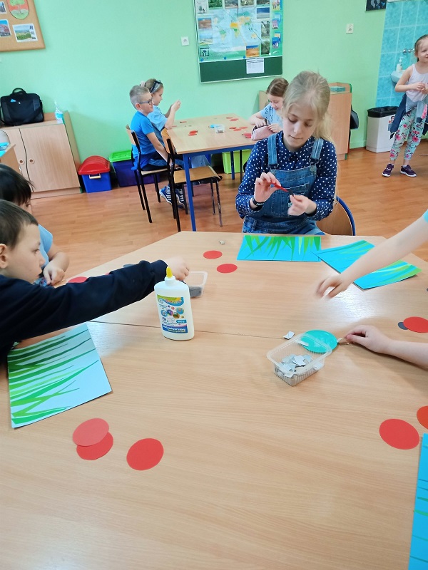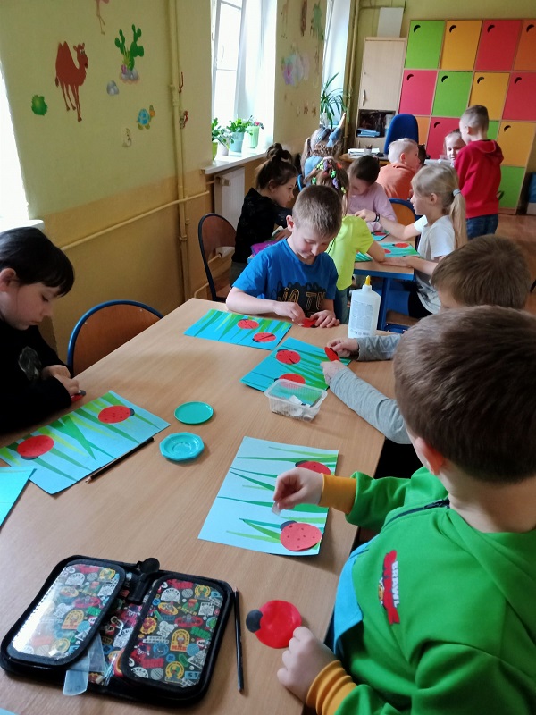 Zapraszamy do obejrzenia galerii zdjęć z procesu powstawania pracy plastycznej „Biedronki na łące”. Miłego oglądania.