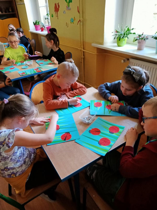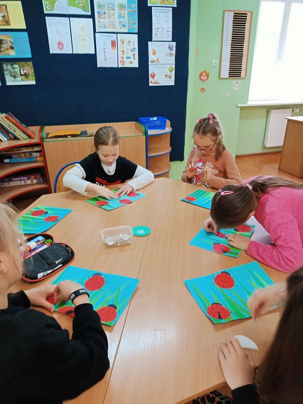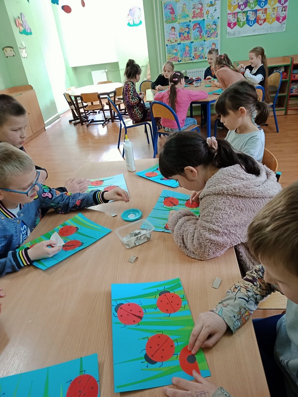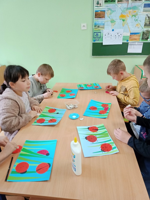 Na zajęciach świetlicowych wzbogaciliśmy naszą wiedzę na temat biedronek. Wiemy jak odróżnić nasze europejskie biedronki „siedmiokropki” od biedronek azjatyckich. Dowiedzieliśmy się, że są to bardzo pożyteczne owady. Pomagają one ogrodnikom w walce ze szkodnikami roślin, ponieważ zjadają wiele z nich.
