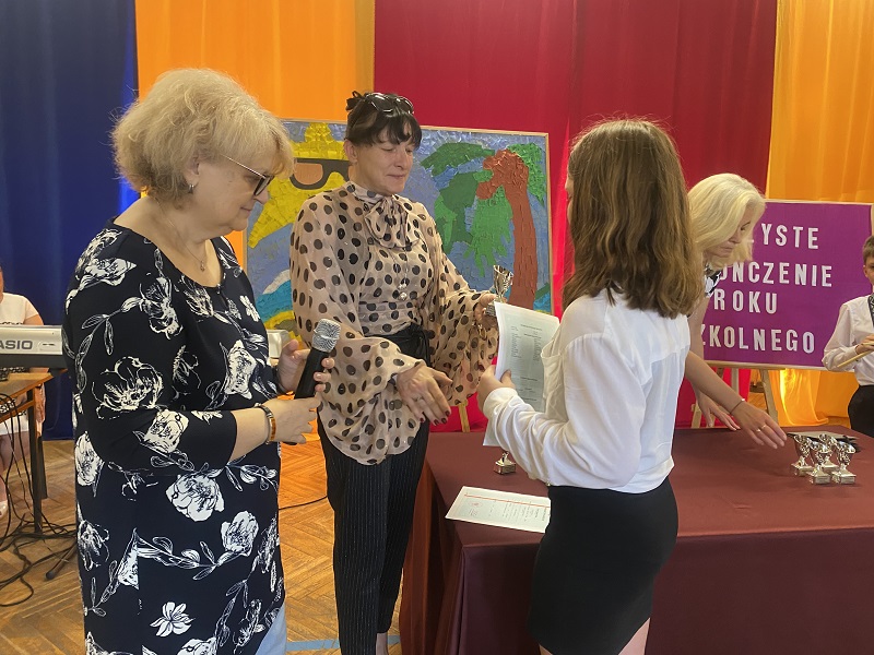 Wraz z wychowawcami klasa Pani Dyrektor wręczyła statuetki, nagrody za wyniki w nauce oraz świadectwa z wyróżnieniem następującym uczniom: