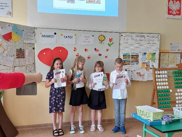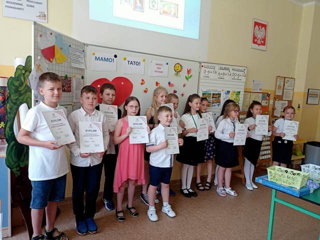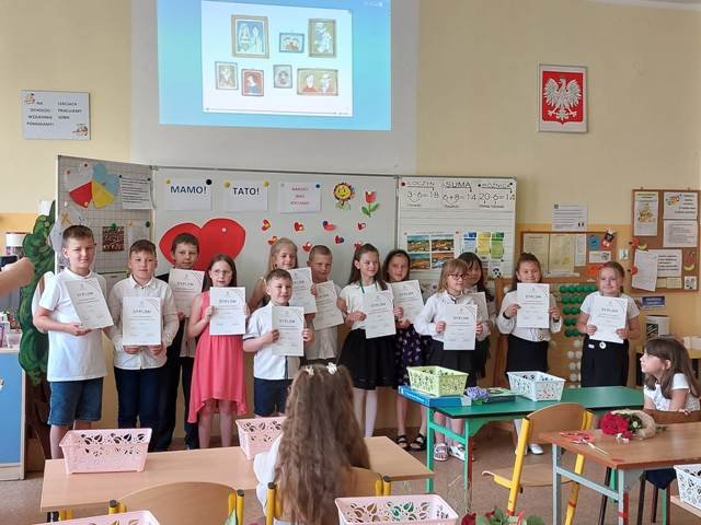 Uczniowie klasy 2a, zanim udali się na zasłużone wakacje, przedstawili program słowno - muzyczny i wręczyli upominki swoim Rodzicom z okazji Klasowego Święta Rodziców. Następnie odebrali dyplomy za uczestnictwo w zajęciach SKS-u - dziękujemy Panu M. Strameckiemu za umożliwienie nam udziału w nich. Serdecznie dziękujemy także Pani D. Cichy za całoroczne prowadzenie zajęć "Sprawny Dolnoślązaczek". Dziękujemy za zaangażowanie, ciepło, wiarę w nasze możliwości, uśmiech i dobre słowo. Nagrody, dyplomy otrzymali także uczniowie, którzy szczególnie pracowali na rzecz klasy i szkoły. A teraz WITAJCIE WAKACJE!