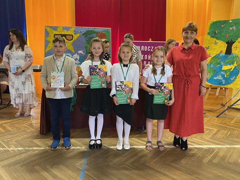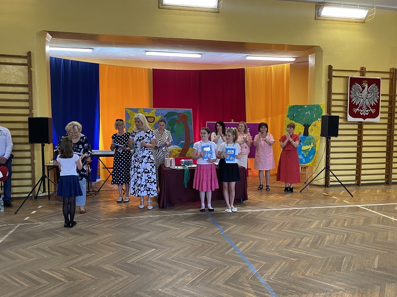 Po przemówieniu zostały wręczone świadectwa z wyróżnieniem, rodzicom podziękowania za pracę na rzecz szkoły.