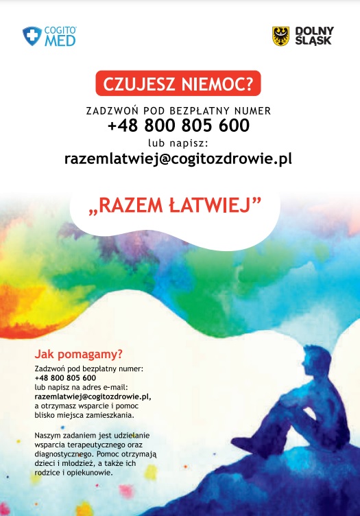 Dla zaniepokojonych rodziców dostępny jest telefon: 800 805 600 oraz mail: razemlatwiej@cogitozdrowie.pl
