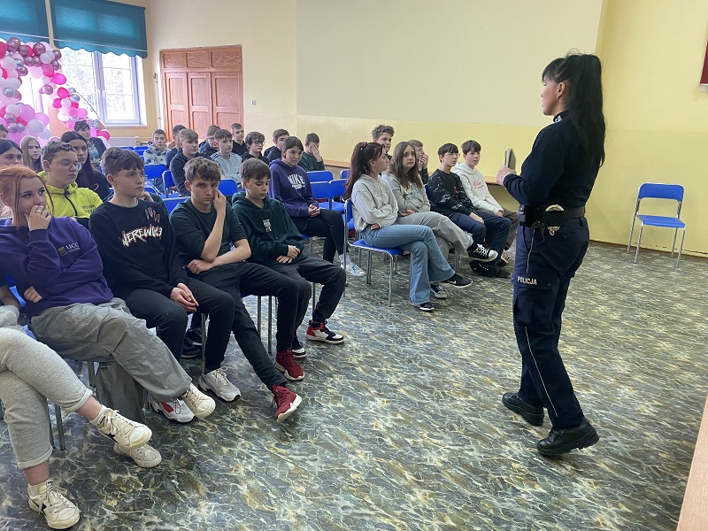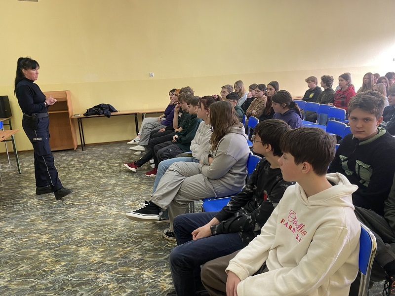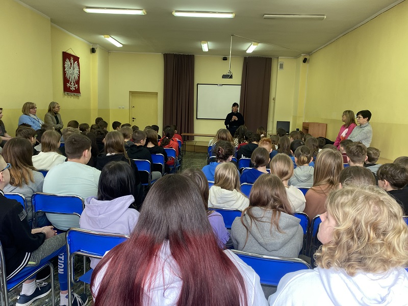 W dniu 21.02,2024 gościliśmy w naszej szkole przedstawicieli Komisariatu II miasta Wałbrzycha. Policjanci przeprowadzili pogadankę dla klas IV – VIII na temat konsekwencji prawnych czynów karalnych . Zaprosili również do swojej siedziby uczniów wraz z wychowawcami na lekcję ukazującą codzienną pracę wałbrzyskiej Policji.