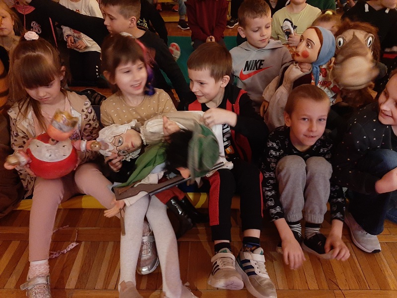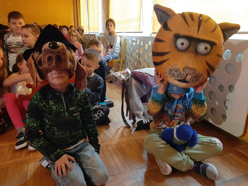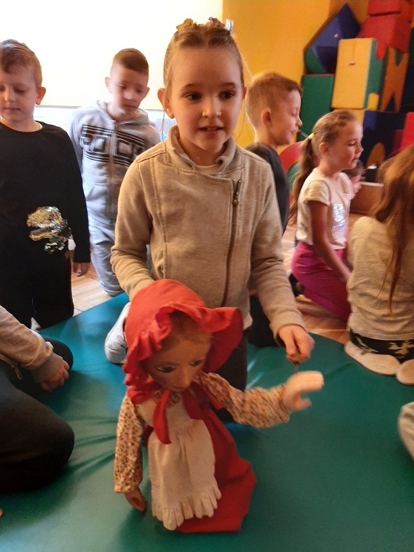 W dniu 17 kwietnia gościliśmy w naszej szkole teatr Bajka, grajacy zarówno na dużych scenach jak i kameralnych. Aktorzy zagrali w przedstawieniu, pt." Czerwony Kapturek", a po nim odbyły się warsztaty lalkarskie. Dzieci dowiedziały się o różnych technikach animacji: maskach, kukłach, marionetkach, jawajkach , pacynkach , mapetach i lalkach żyworękich.