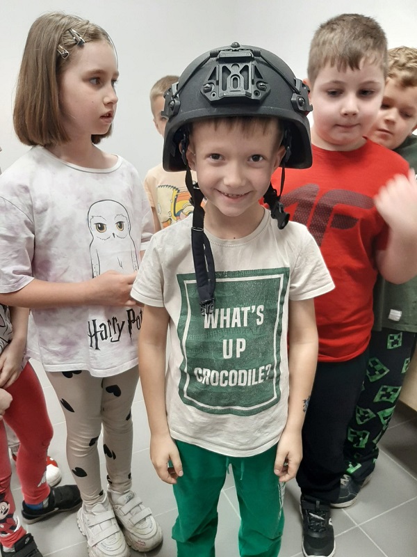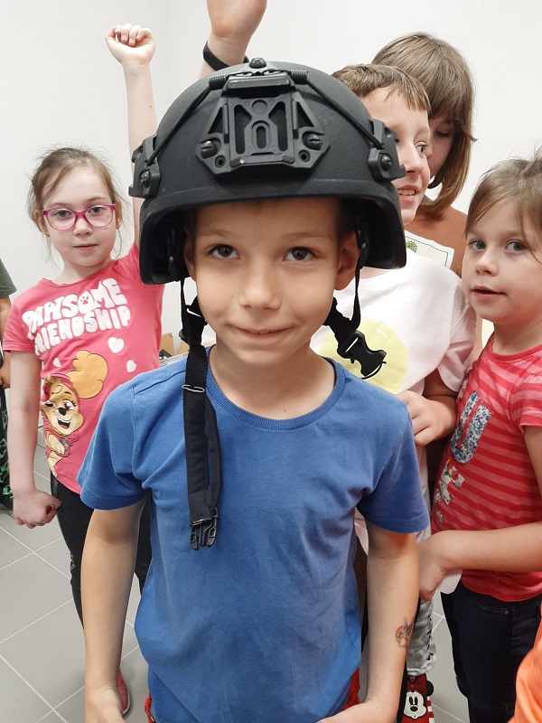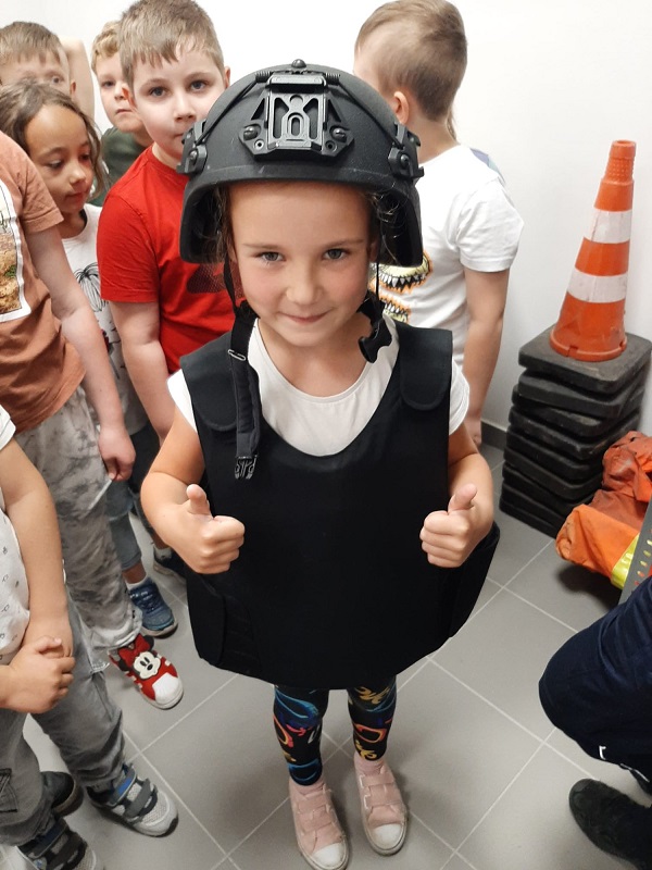 Dzieci rozmawiały z policjantem na temat jego pracy. Zadawały też dużo pytań;) Potem zwiedziły różne pomieszczenia znajdujące się w komisariacie: salę spraw, dyspozytornię, pokój zatrzymań, pokój przesłuchań. Udało się również wejść na strzelnicę oraz do magazynu broni i osprzętowania. To był bardzo ciekawie spędzony dzień.