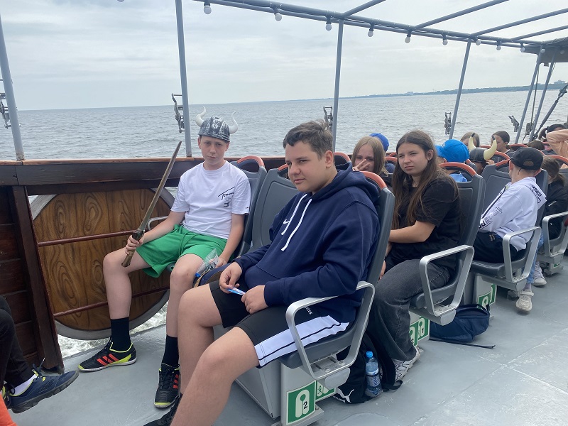 Uczniowie nasi przeistoczyli się w Wikingów, poszukiwaczy bursztynów i wyruszyli w morze oraz na dziki zachód. Przeszli również przez bramę Pomnika Zaślubin z morzem. Spod Pomnika Milenijnego udali się na krótką wizytą do Katedry NMP w Kołobrzegu.