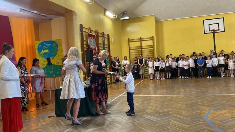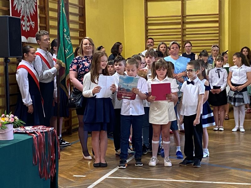 Uroczystości kończące rok szkolny 2023/2024 odbyły 21.czerwca 2024 r się na sali gimnastycznej . Obecnością swoją zaszczycili nas Rodzice .