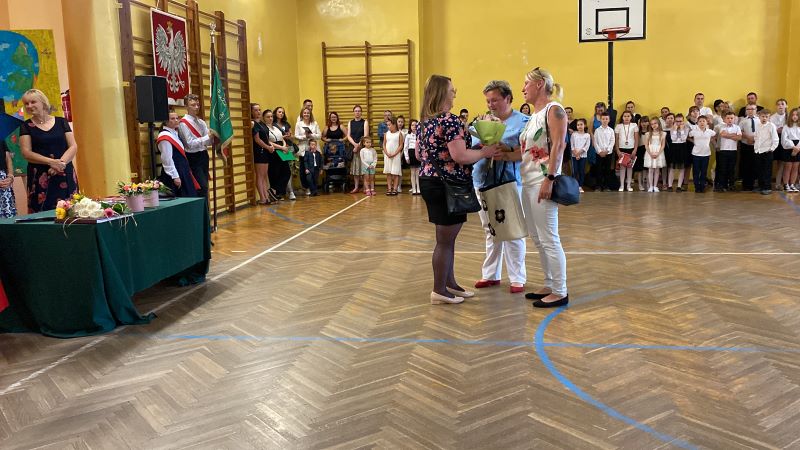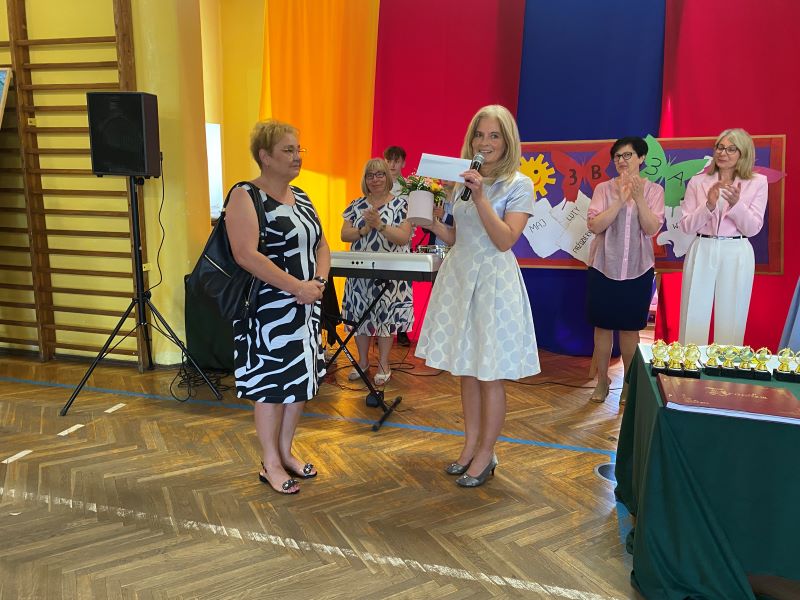 Pani Dyrektor podziękowała Paniom: Ewie Szydłowskiej, Ewie Czerwińskiej Fryszer oraz Pani Marioli Kłasen za wieloletnią pracę w naszej szkole , życząc spełnienia planów, marzeń, pielęgnowanie pasji i zainteresowań a także pogody ducha, ciepła i odpoczynku na emeryturze.