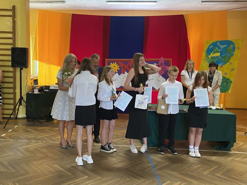 Uczniowie, którzy osiągnęli najlepsze wyniki w nauce zostali wyróżnieni nagrodami i statuetkami przyznanymi przez Dyrektora szkoły. Dyrektor szkoły Agnieszka Chrzanowska podsumowała całoroczną pracę szkoły, pogratulowała uczniom sukcesów, Radzie Pedagogicznej podziękowała za trud włożony w nauczanie i wychowanie. Rodzicom, Opiekunom za wsparcie i pracą na rzecz naszej szkoły.