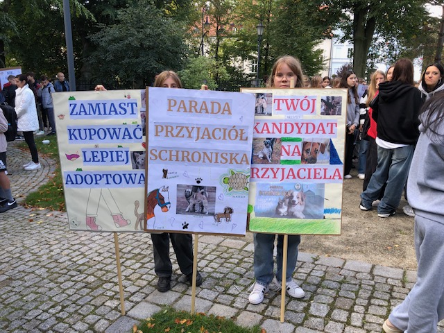 Dnia 27 września w Zespole Szkolno-Przedszkolnym nr 5 w Wałbrzychu odbyło się spotkanie przyjaciół schroniska. Wolontariusze naszej szkoły wzięli udział w tym szlachetnym przedsięwzięciu. Po części oficjalnej, obecni na spotkaniu wraz z podopiecznymi schroniska przemaszerowali ulicami Śródmieścia. Było bardzo milo i radośnie.