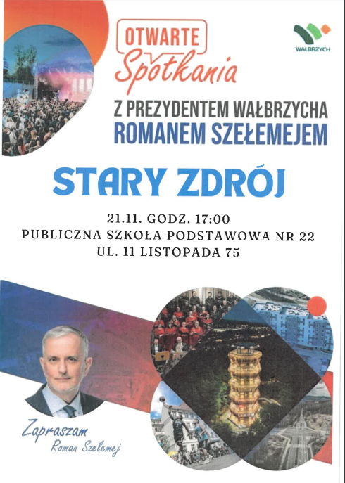W imieniu Prezydenta miasta Wałbrzycha pana Romana Szełemeja zapraszamy na otwarte spotkania z mieszkańcami Wałbrzycha.