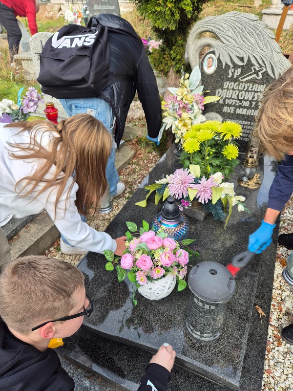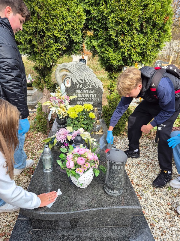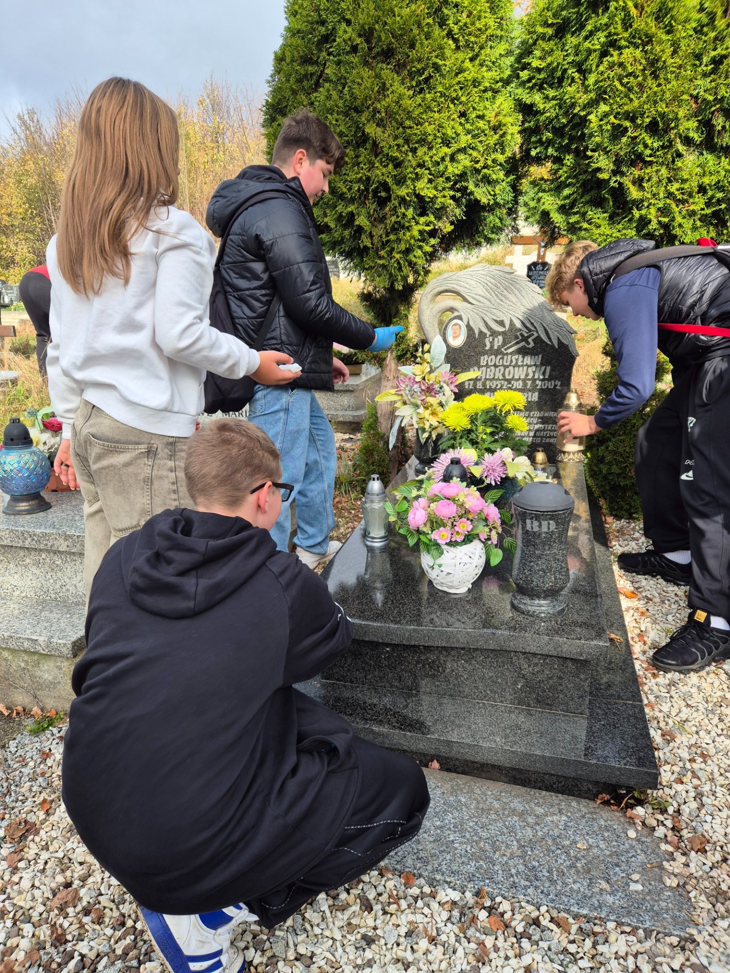 W związku ze Świętem Zmarłych, który w naszym kraju jest również dniem pamięci narodowej oraz pięknym zwyczajem zapalania zniczy na grobach, wolontariusze naszej szkoły włączyli się do akcji zaopiekowania grobem.