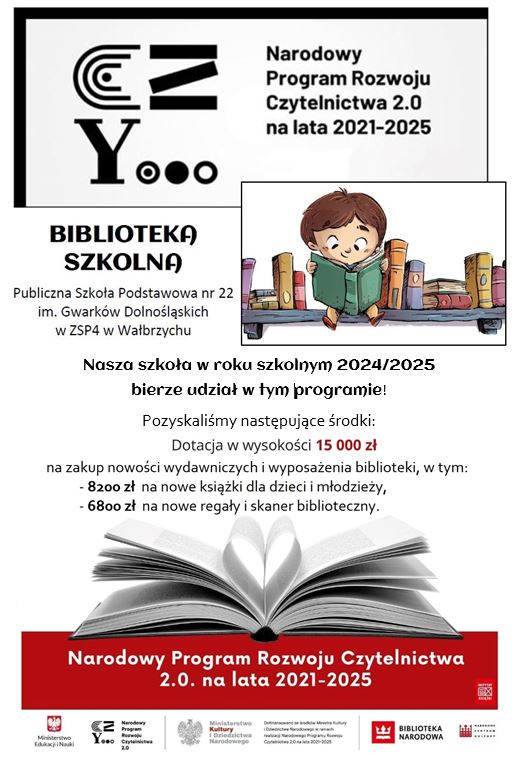 W roku szkolnym 2024/2025 biblioteka szkolna pozyskała fundusze w wysokości 15000,00 zł w ramach