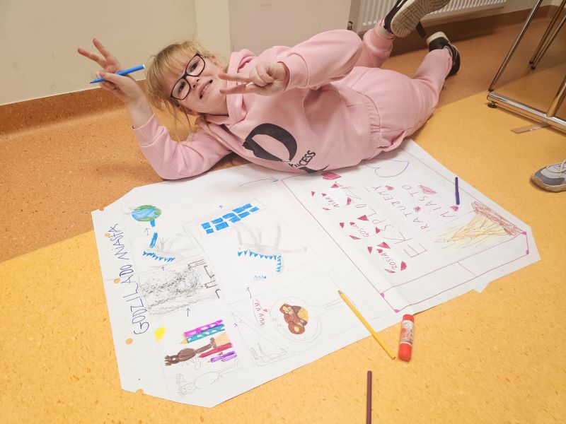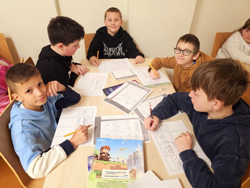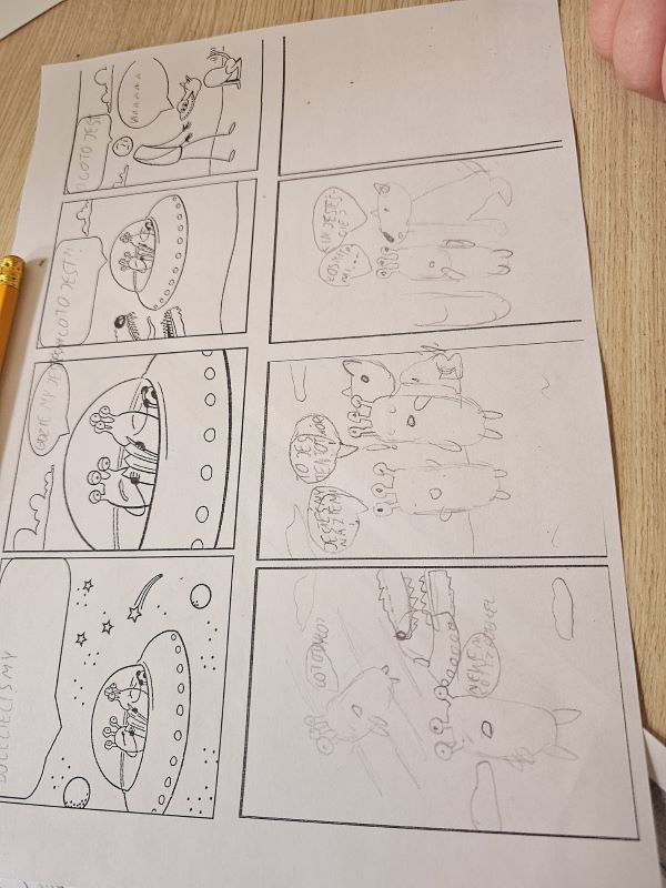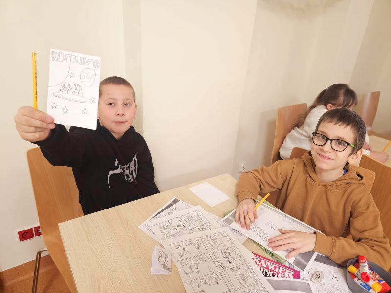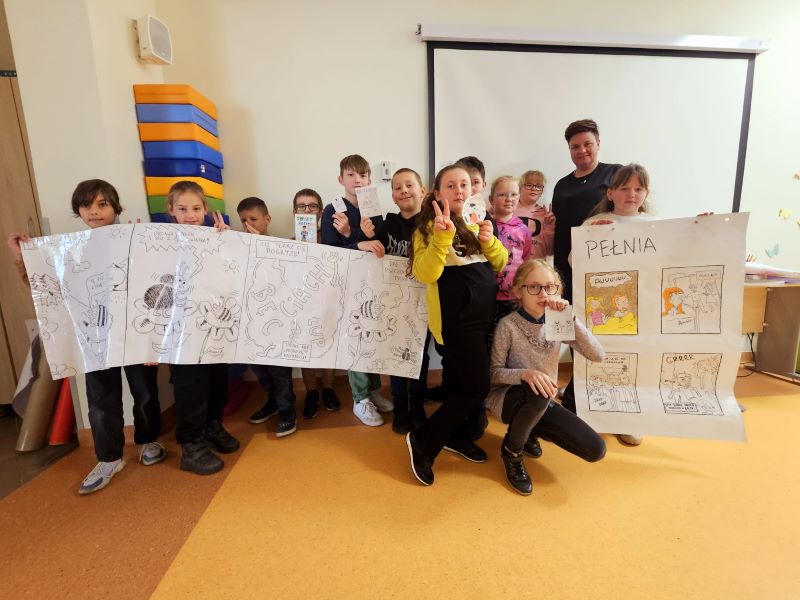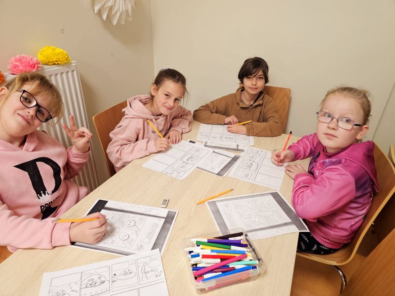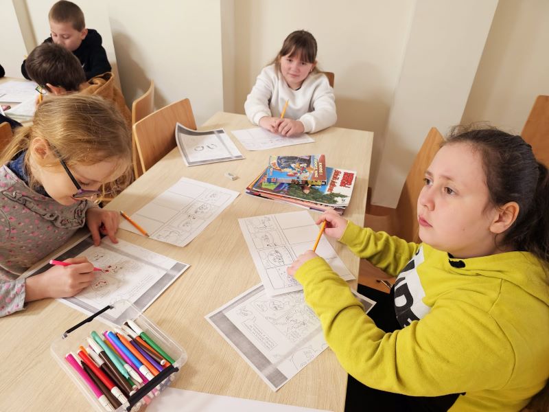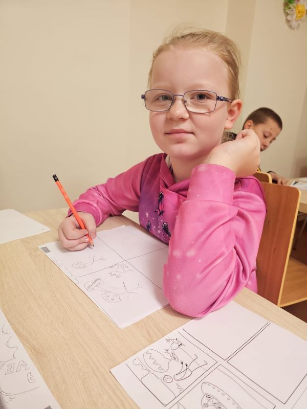 Dzieci zainspirowane wykładem jak stworzyć swój własny komiks, chętnie zabrały się do pracy.
