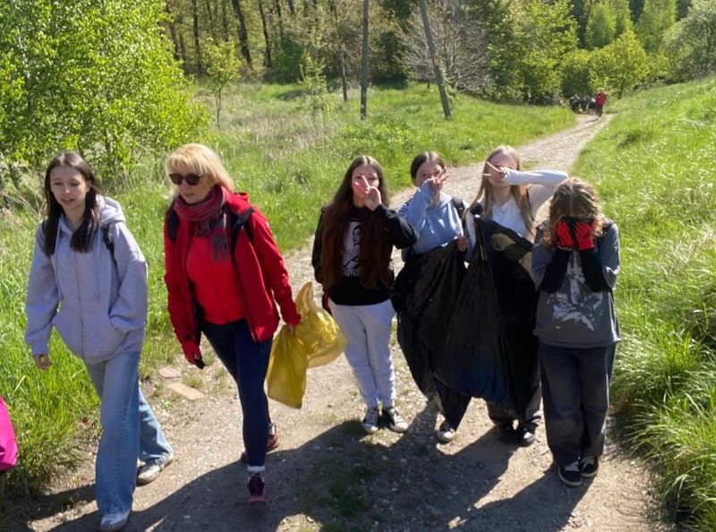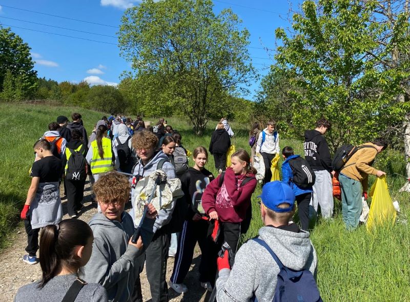 9.maja uczniowie klas IV b i VII a wzięli udział w akcji „ Sprzątanie niedźwiadków” integrując się wraz z innymi szkołami wokół idei ochrony środowiska.