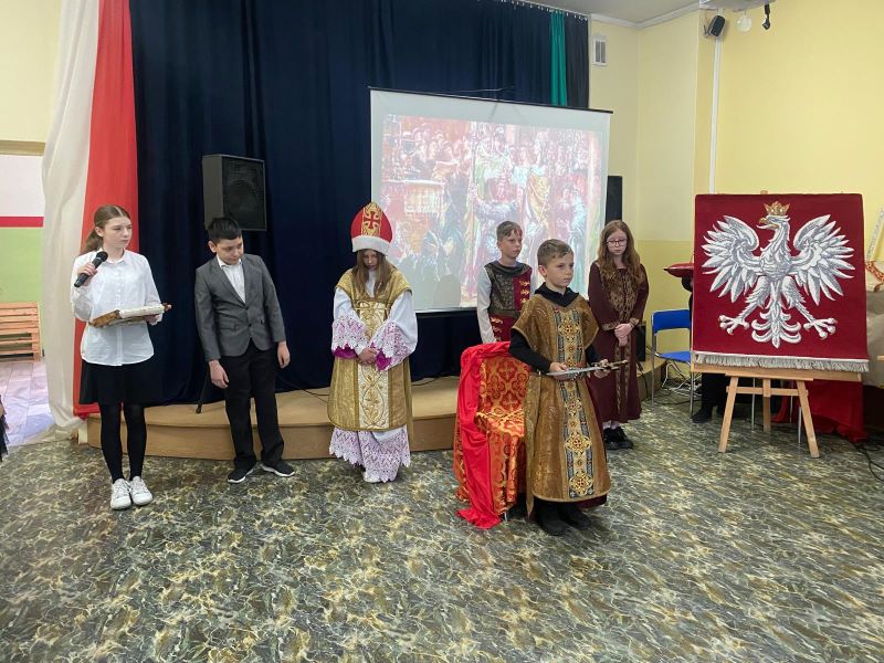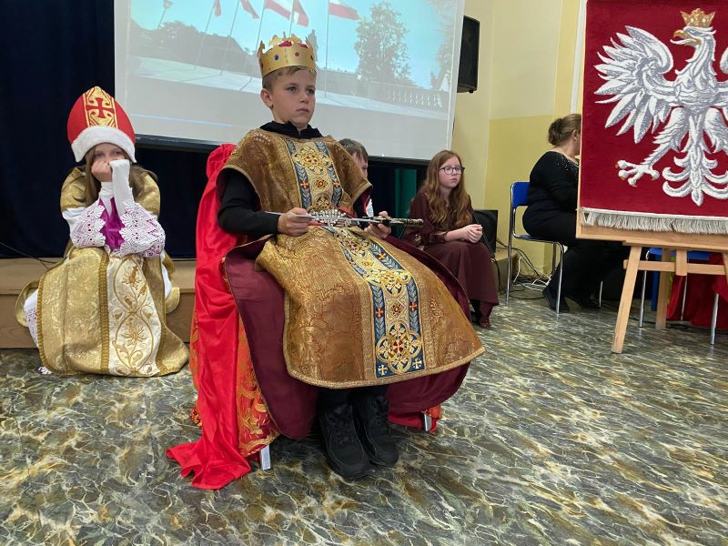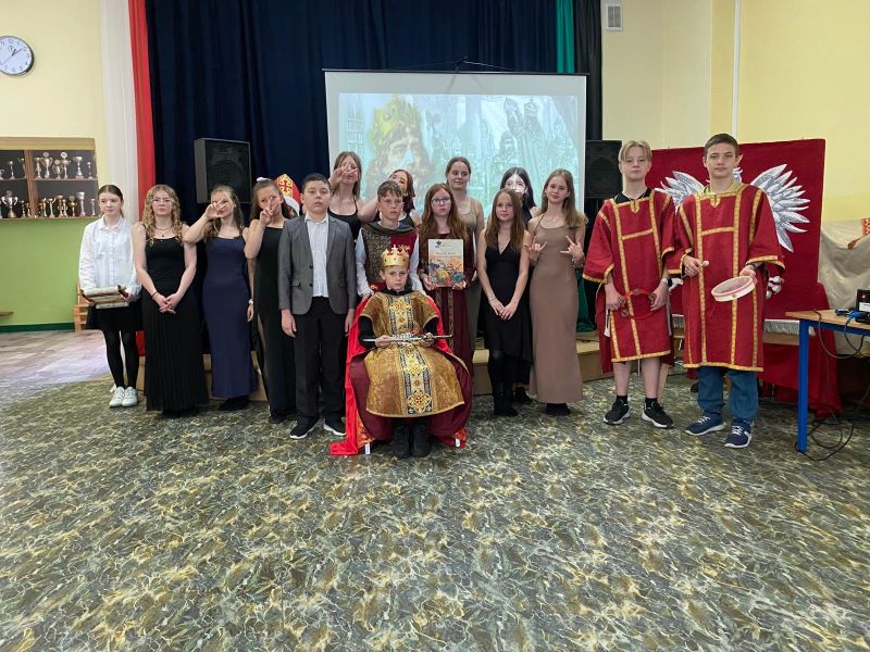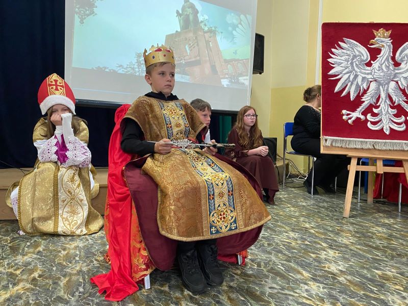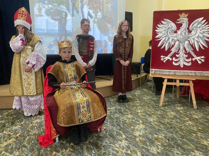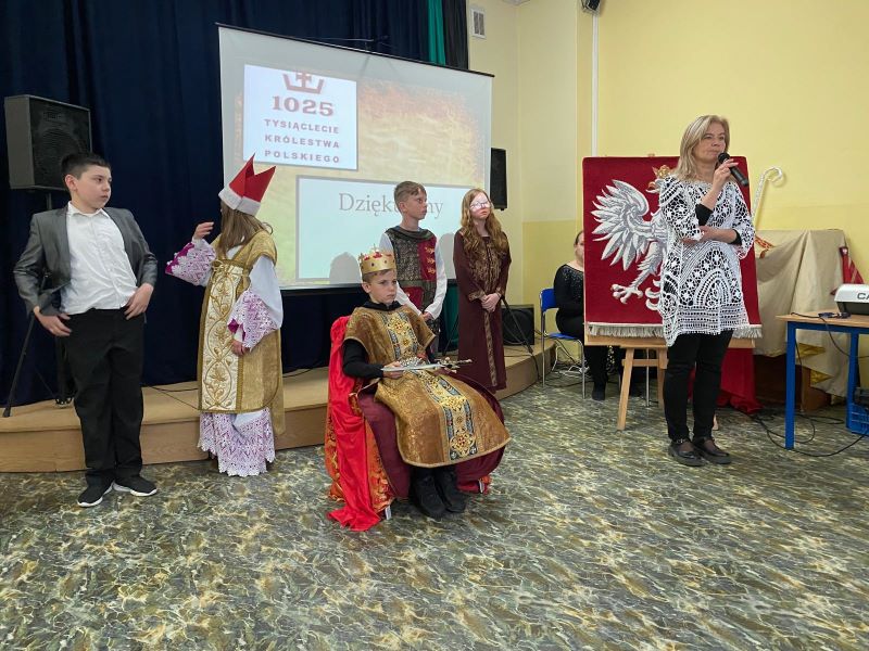 W naszej szkole 4.06.2025 r odbyła się wyjątkowa otwarta lekcja historii dla uczniów klas IV–VIII, poświęcona tysiącleciu Koronacji Bolesława I Chrobrego – pierwszego króla Polski. To niezwykłe wydarzenie edukacyjne było nie tylko okazją do zgłębienia wiedzy o początkach polskiej państwowości, ale także do wspólnego świętowania ważnej patriotycznej rocznicy historycznej.
