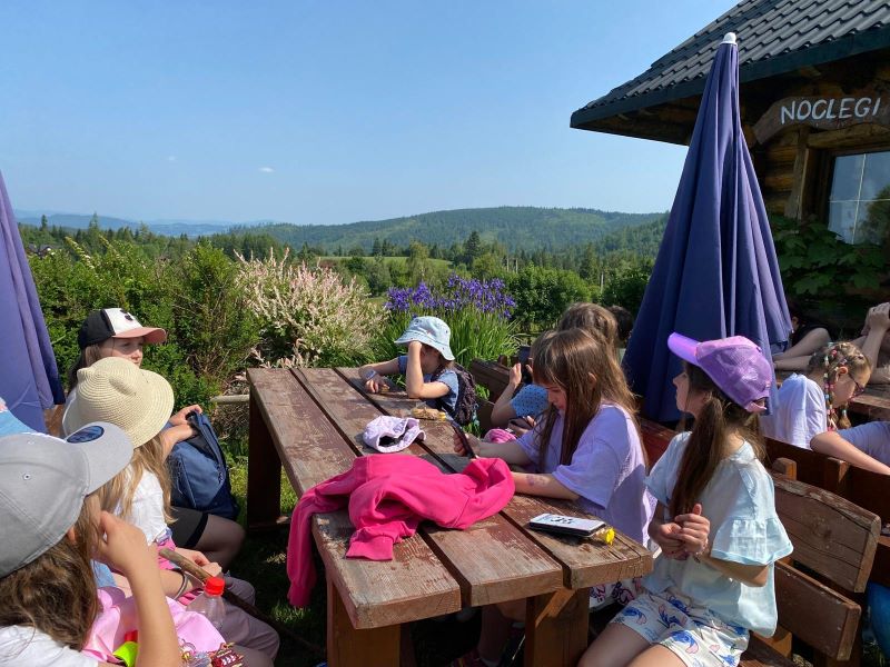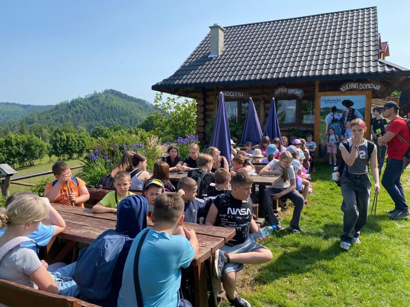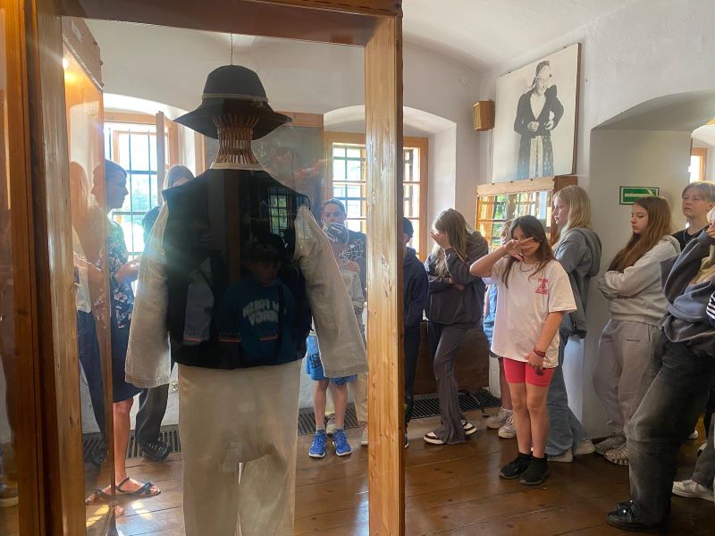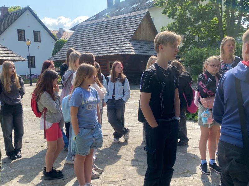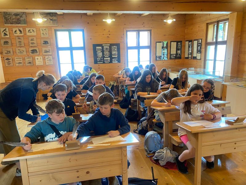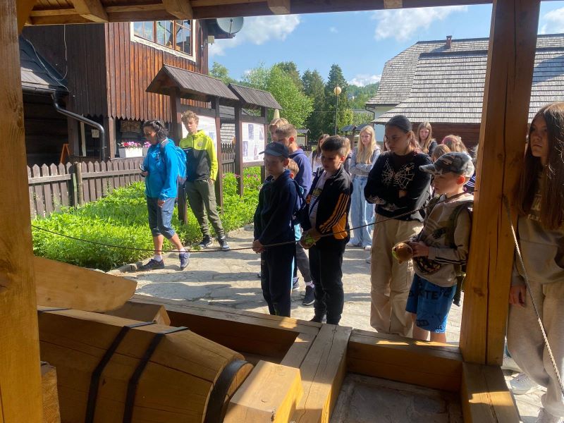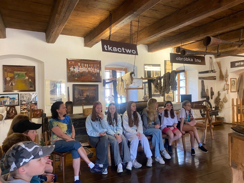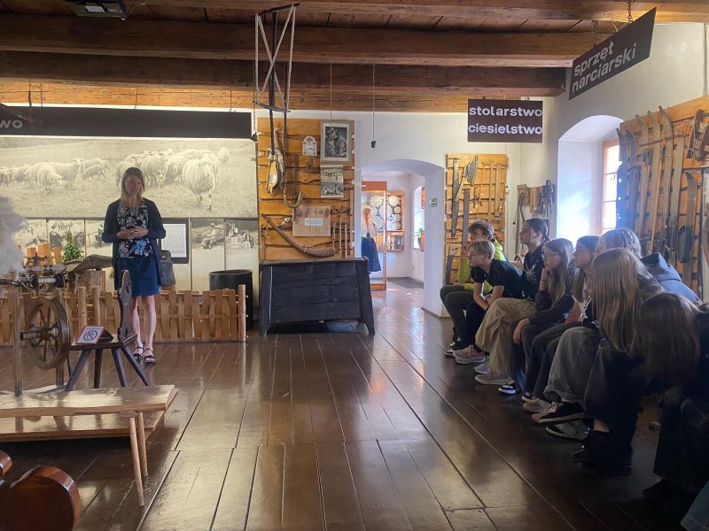 Rano odwiedziliśmy Muzeum Beskidzkie, gdzie poznaliśmy życie, obyczaje górali sprzed wieku Dowiedzieliśmy się jak wypasano owce, tkano len, oraz wełnę owczą. Następnie udaliśmy się do szkoły, gdzie uczyliśmy się pisać piórem gęsim,