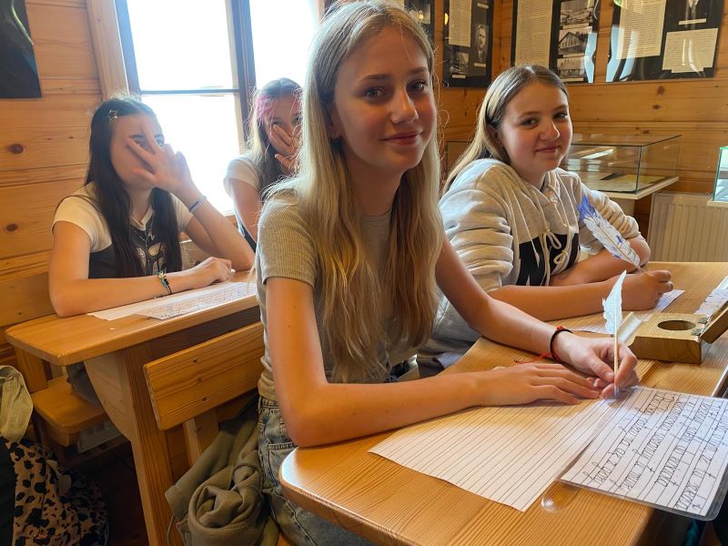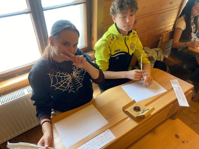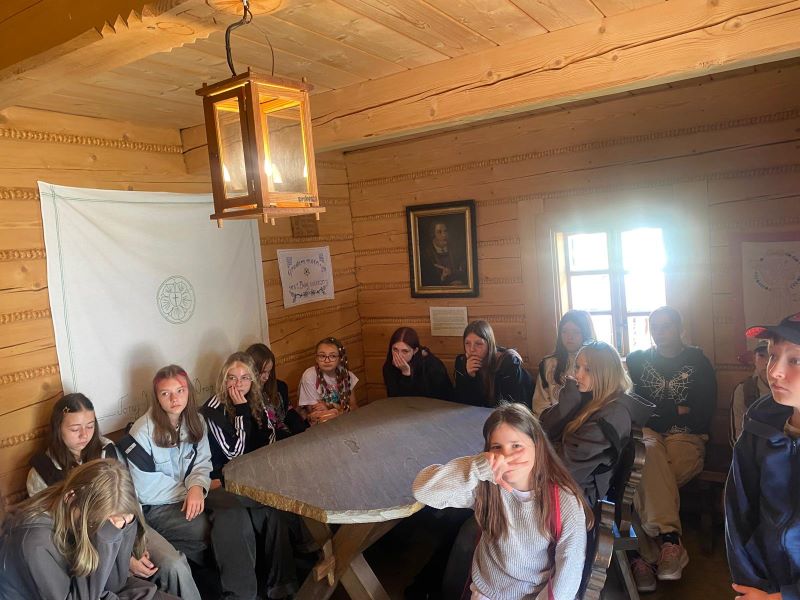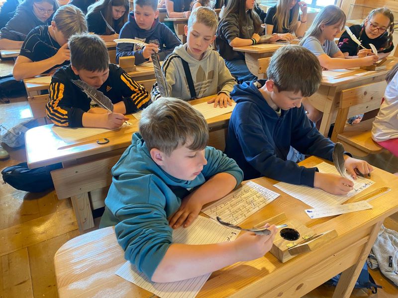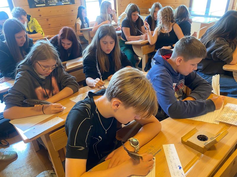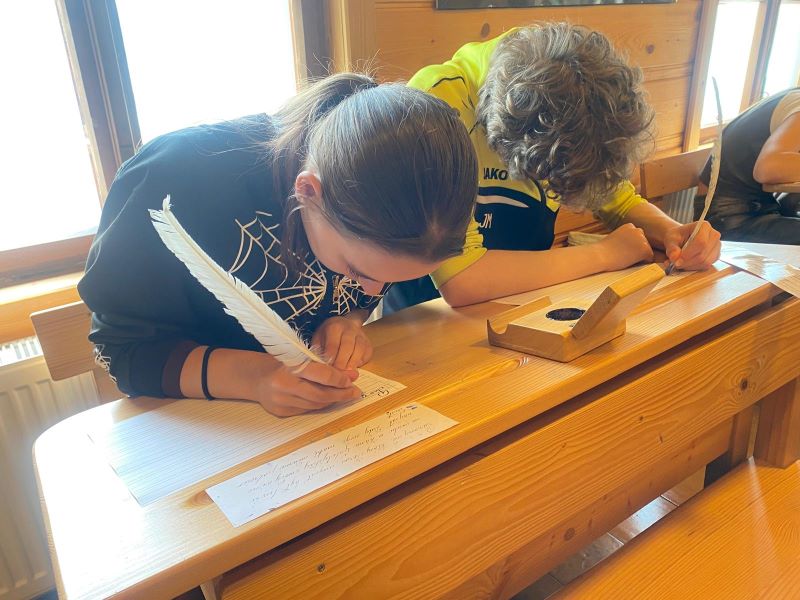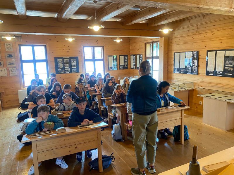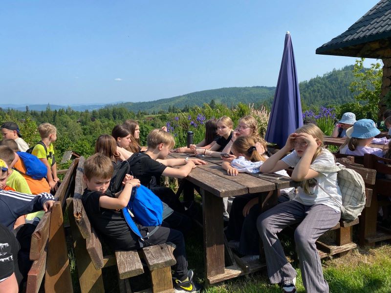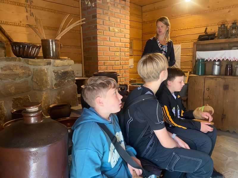 Rano odwiedziliśmy Muzeum Beskidzkie, gdzie poznaliśmy życie, obyczaje górali sprzed wieku Dowiedzieliśmy się jak wypasano owce, tkano len, oraz wełnę owczą. Następnie udaliśmy się do szkoły, gdzie uczyliśmy się pisać piórem gęsim,