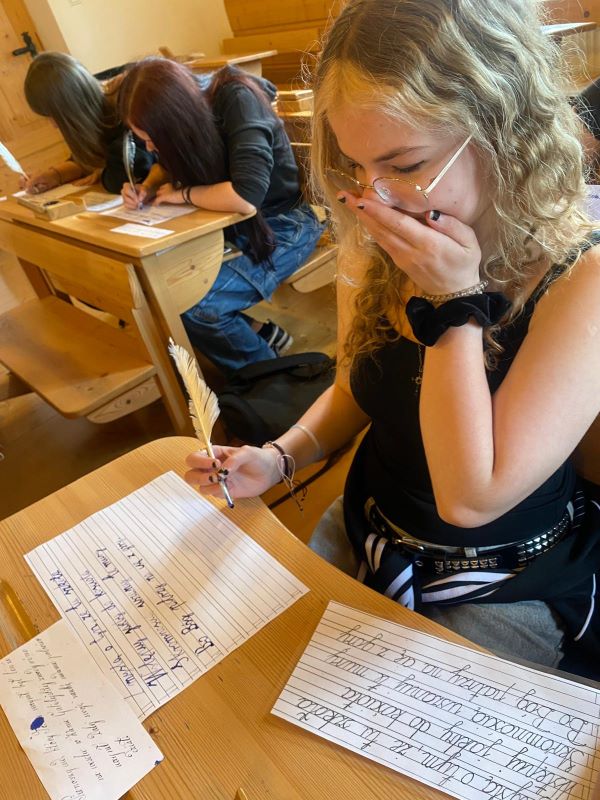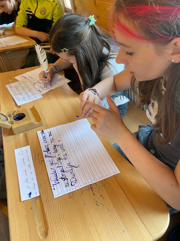 dowiedzieliśmy się co to kaligrafia i jak kiedyś pisano książki.