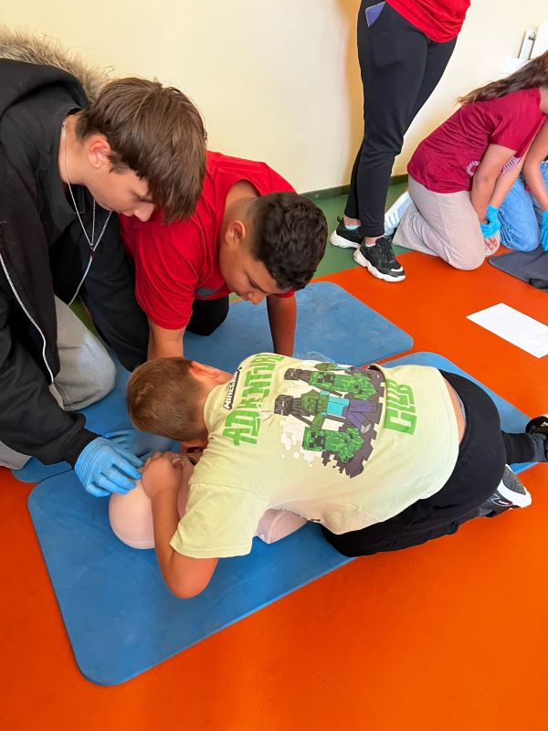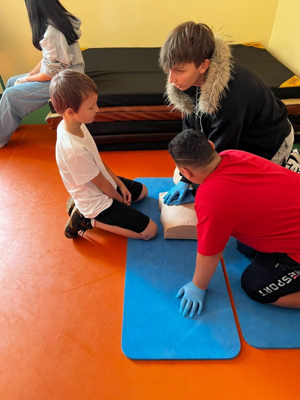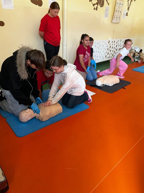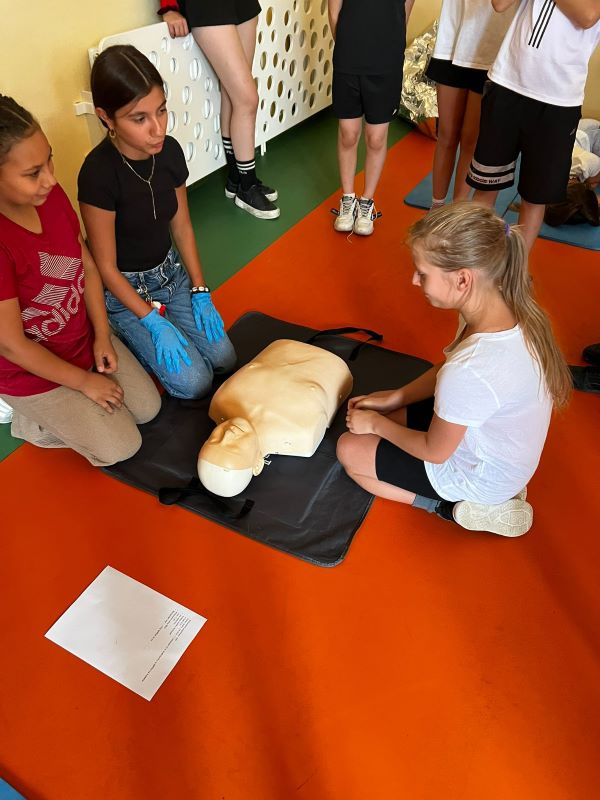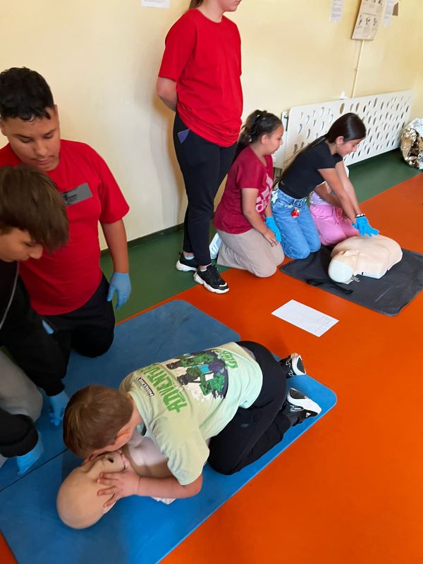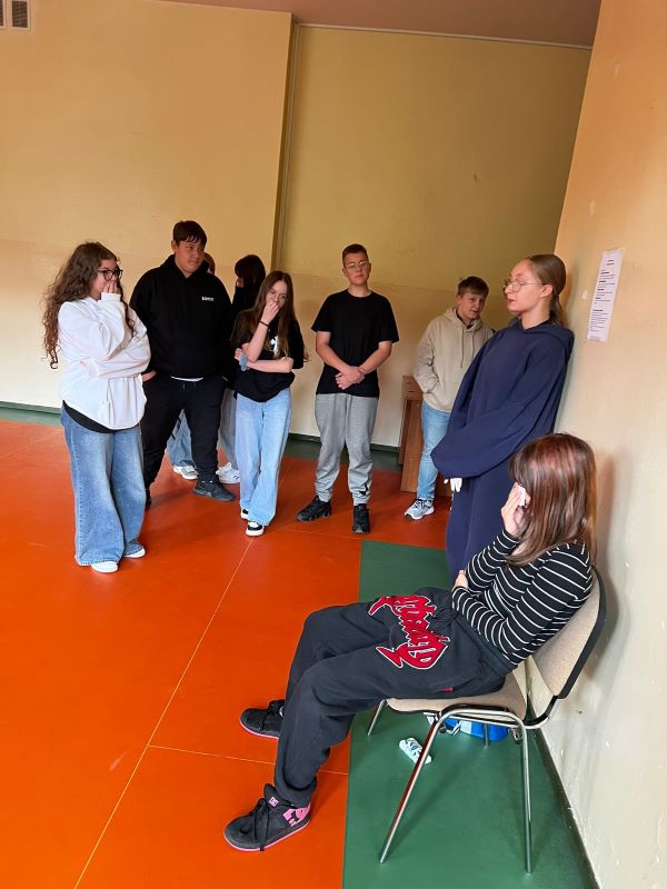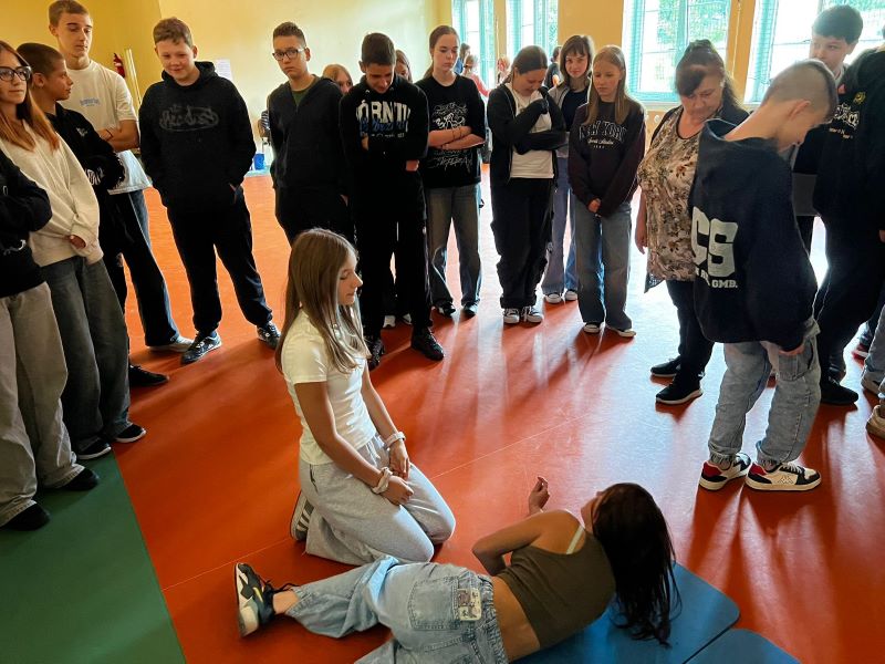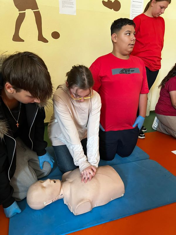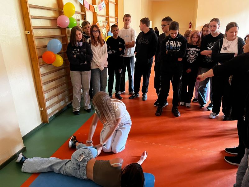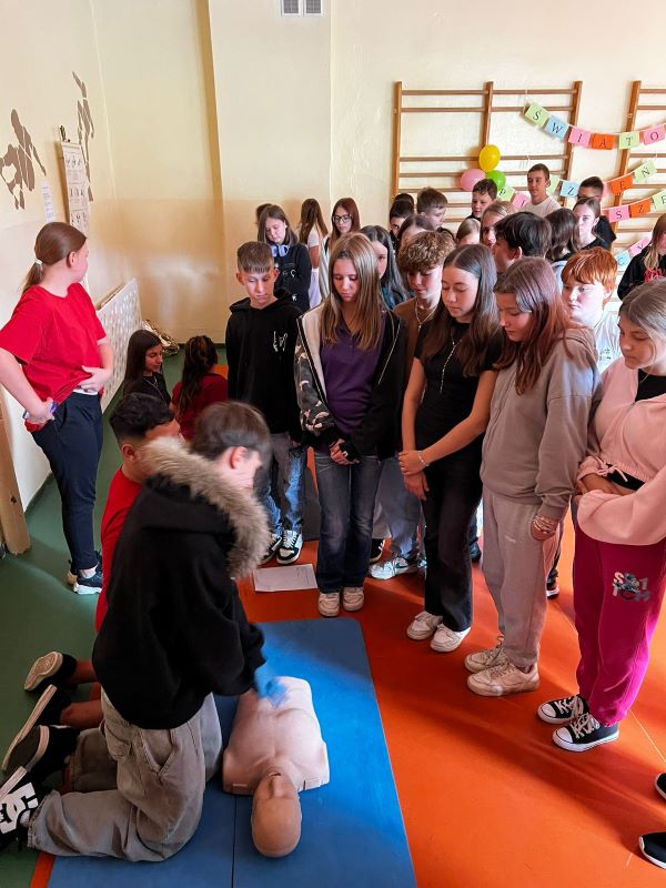Uczniowie wcielili się w role ratowników medycznych, ucząc postępowania w sytuacjach: