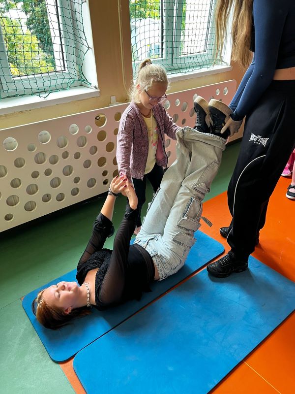 Najbardziej zaangażowane były dzieci najmłodsze, które ze skupieniem obserwowały, a nawet brały udział w ratowaniu poszkodowanego.