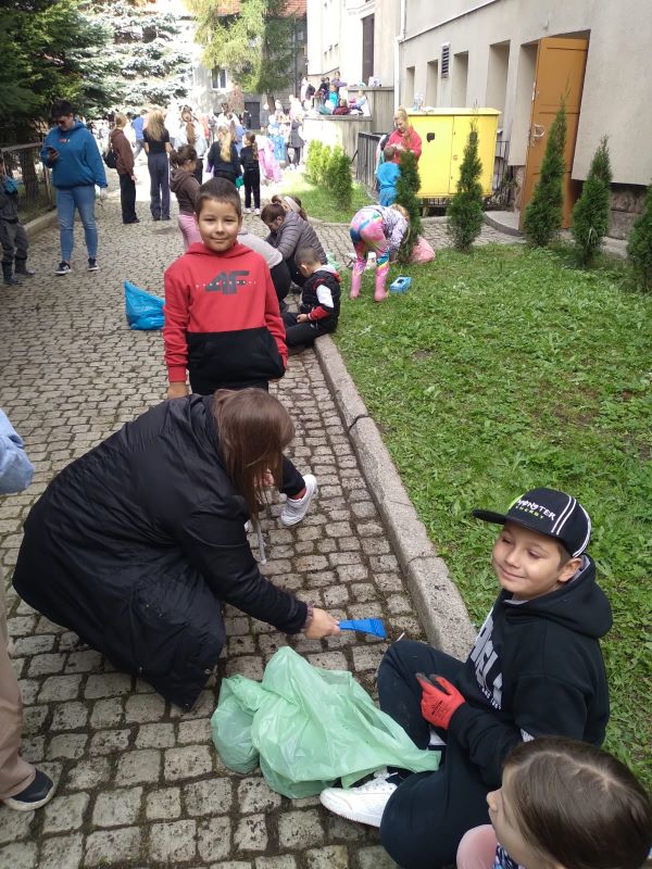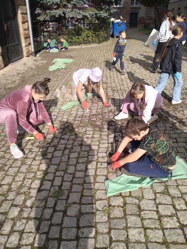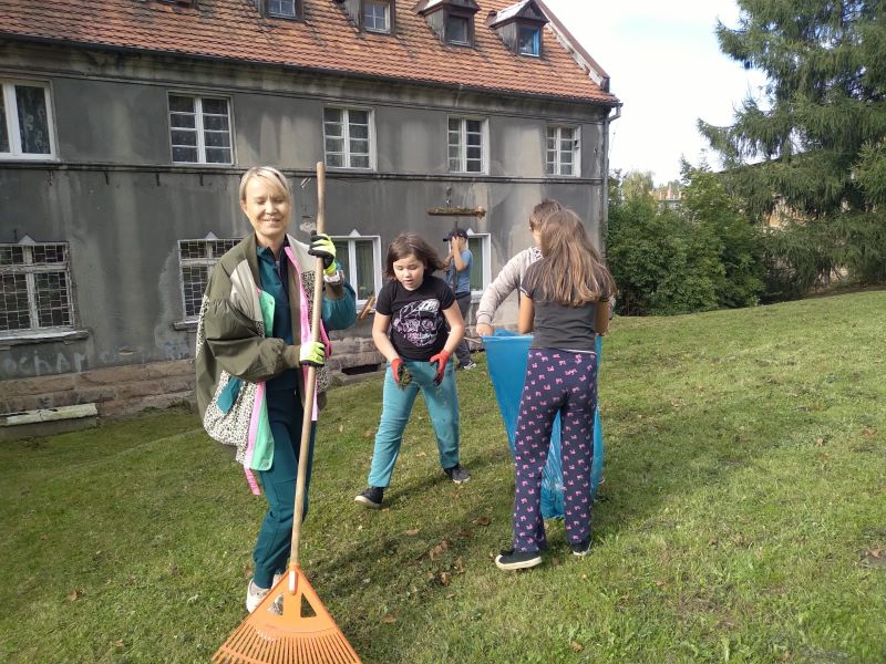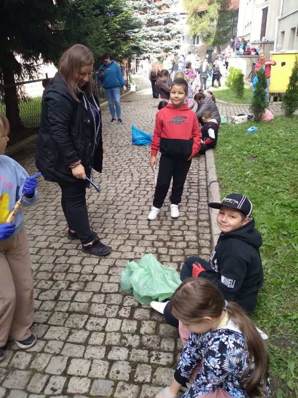 Uczniowie ze swoimi rodzicami i nauczycielami zadbali o porządek na terenie ZSP nr 4 .