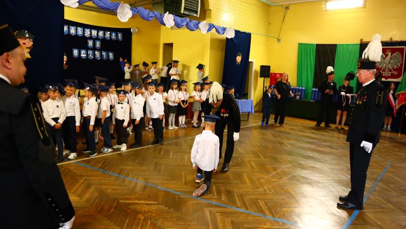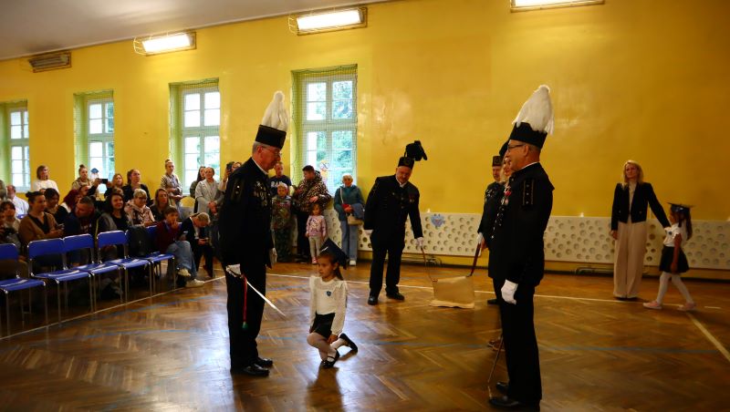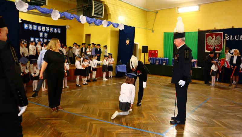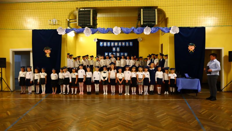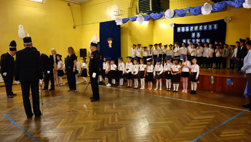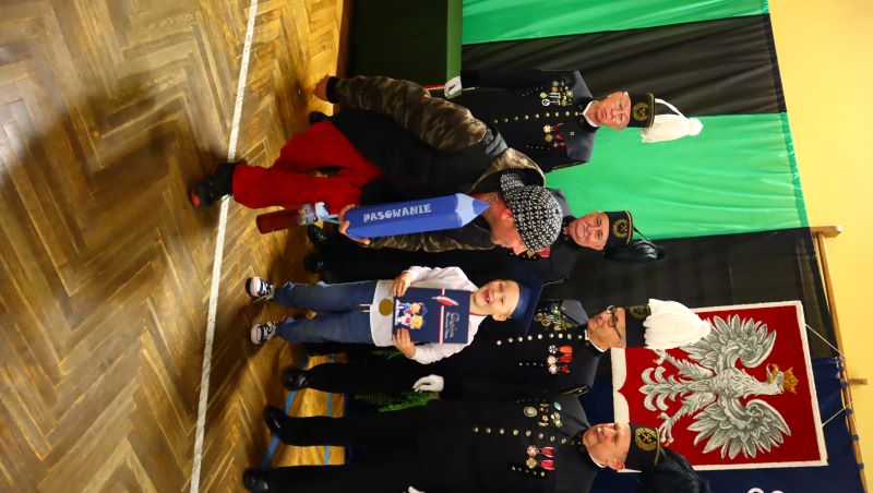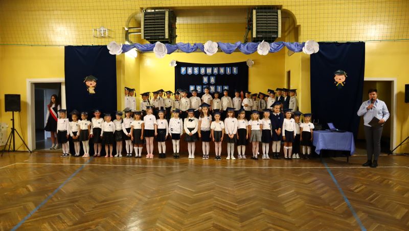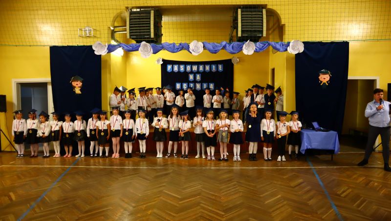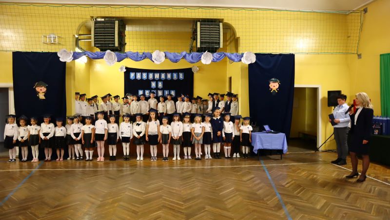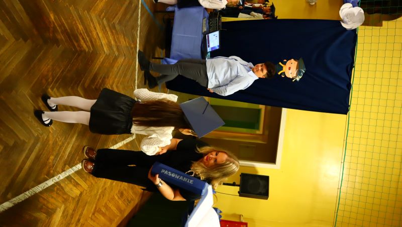 Pasowanie klas pierwszych na Gwarka i ucznia.