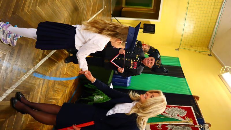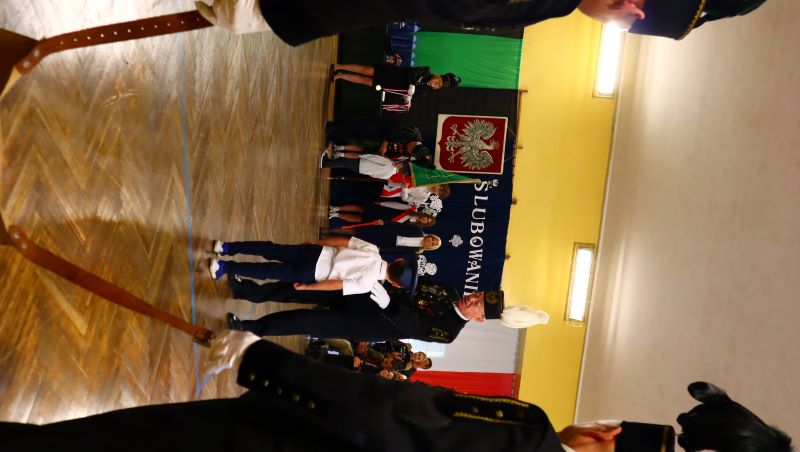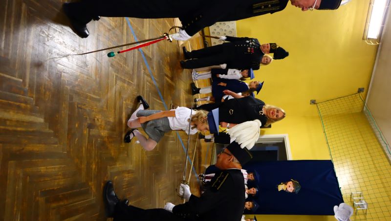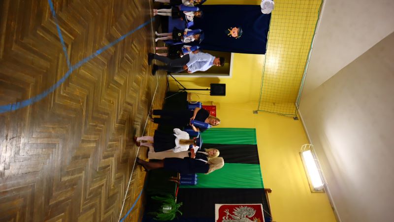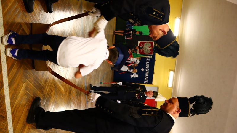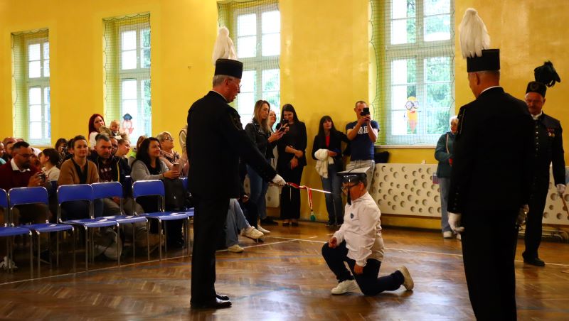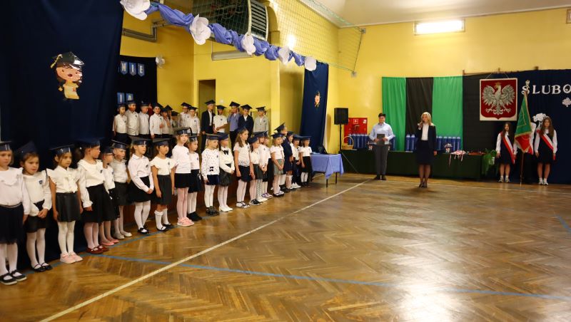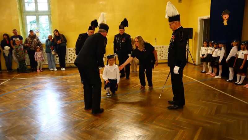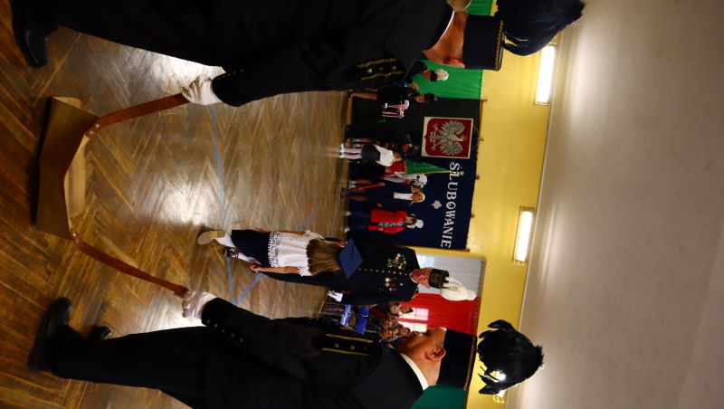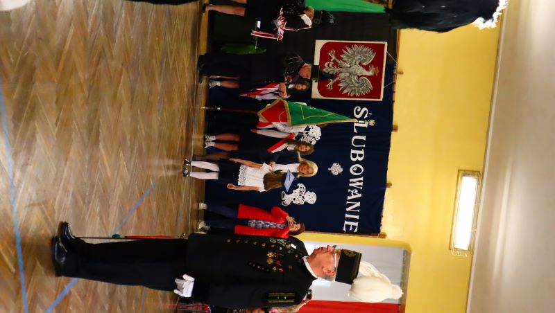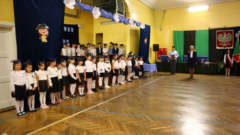 Pasowanie klas pierwszych na Gwarka i ucznia.