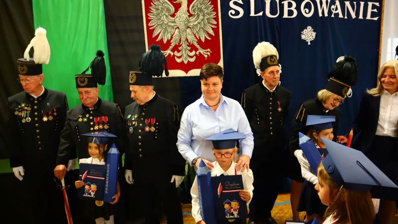 W wyjątkowej atmosferze, w obecności zaproszonych gości, w tym górników ze Stowarzyszenia KWK „Viktoria”, najmłodsi uczniowie dołączyli oficjalnie do społeczności szkolnej. Górnicy pasowali pierwszoklasistów na Gwarków, a Pani Dyrektor pasowania na ucznia.
