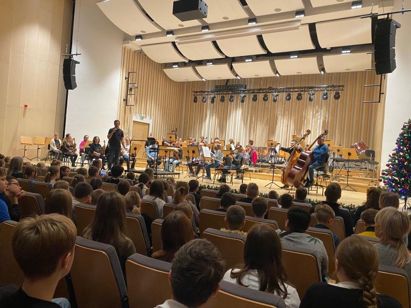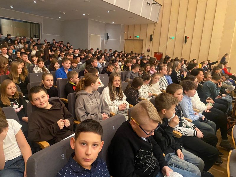 W ramach edukacji kulturalnej uczniowie klas IV-VIII w dniu 11.12.2025 uczestniczyli w próbie koncertu w Filharmonii Sudeckiej "-- Czekając na pierwszą gwizdkę".