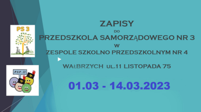 Zapisy do Przedszkola Samorządowego NR 3 w Wałbrzychu...