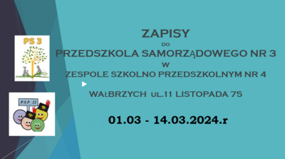 Zapisy do Przedszkola Samorządowego NR 3 w Wałbrzychu